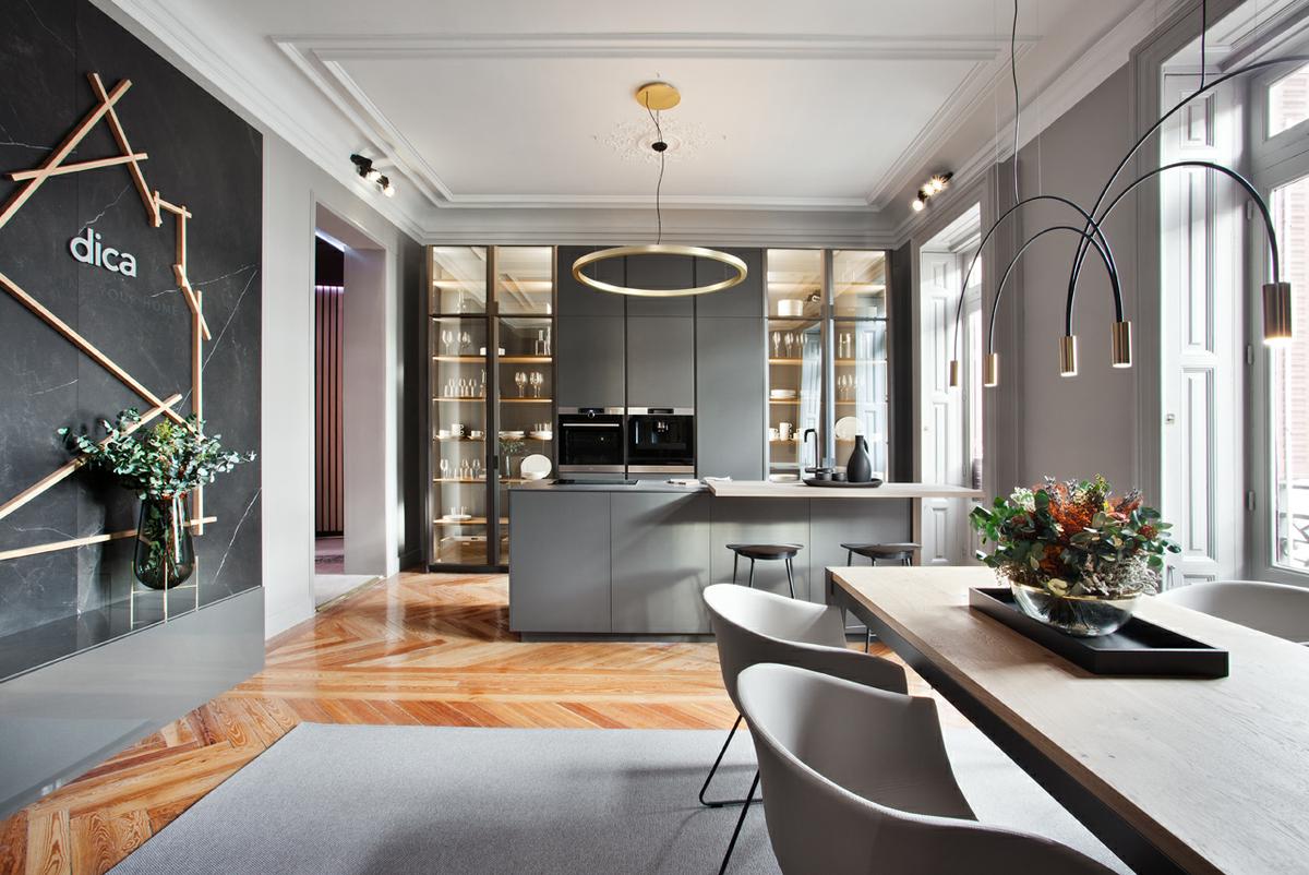 Las maravillosas superficies de piedra como el mármol, el granito, la caliza, etc., siguen acaparando la atención, en clara competencia con los tejidos de terciopelos y los metales dorados. Este trabajo artesanal de cada espacio, camufla un universo tecnológico y sistemas domóticos cada vez más presentes en el interiorismo actual. Los avances tecnológicos aplicados a las viviendas actuales conviven con envoltorios artesanales, en una suerte de maridaje, perfecto y encajado, entre tradición, diseño y tecnología.