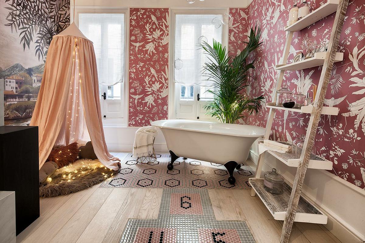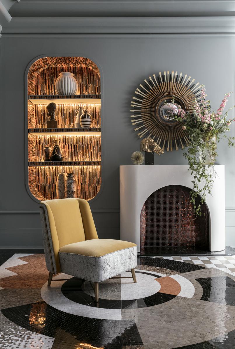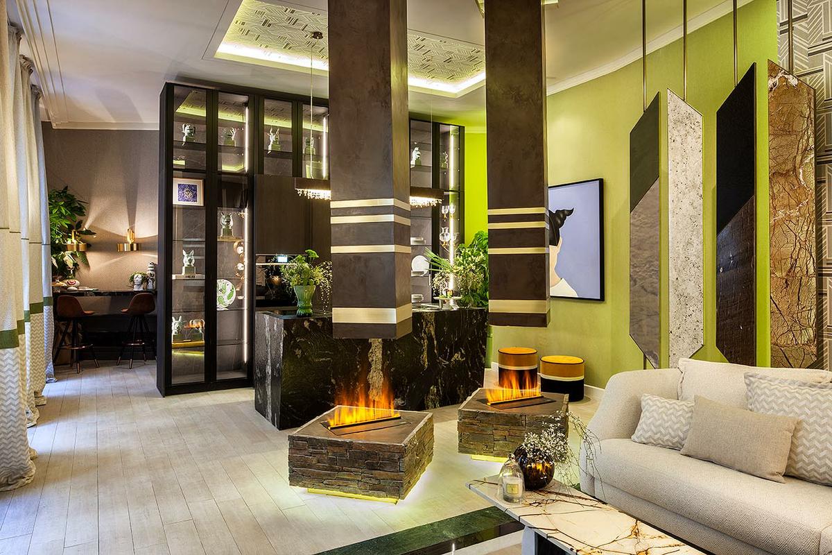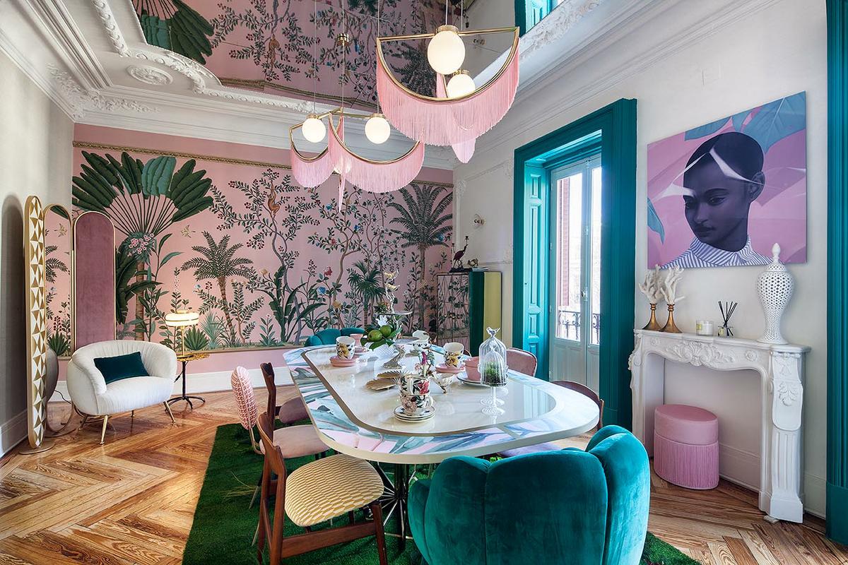 Se consolidan tendencias como el tropicalismo paradisíaco, la flora y fauna en su versión más exótica, los ornamentos dorados mate y la sobredimensión de algunos elementos del mobiliario como lámparas, sofás y butacas.