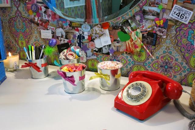 ¡Cómo me gustó ver este teléfono rojo! ¡Tenemos uno igual en casa guardadito y no sé ni si funciona! ¡Querido, ya tienes trabajo, que esta tocador tan femenino me mola mucho! ;)