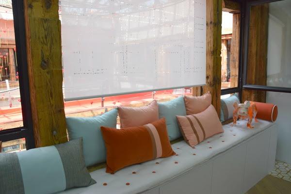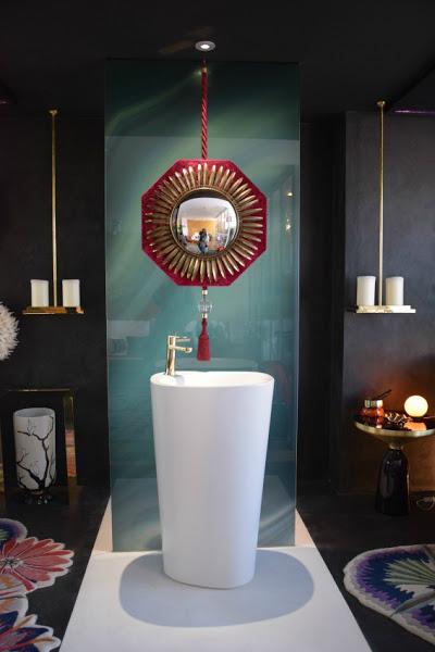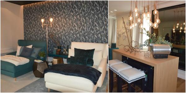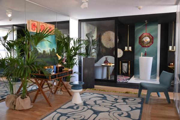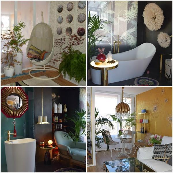 Clo Emotional Design han creado una zona de estar, con aseo de lujo y vestidor. Exostismo, y elegancia a partes iguales, en uno de los espacios más bonitos y alegres. Para copiar: todo?!, como esos "juju hats", los bastidores con imágenes de fores, el sillón columpio estratégicamente situado, el mobiliario de exterior colocado en un interior, el espejo espectacular del baño... y así con todo.