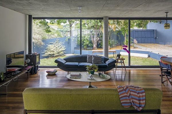 Esta casa minimalista fue concebida e implementada por Metro Arquitetos Associados, y se encuentra en São Paulo, Brasil. Está compuesta por dos volúmenes principales, el hormigón y el acero de esta villa exhibe un diseño funcional: "La planta baja comprende el programa arquitectónico de la casa y está organizada por un volumen de longilíneos que incorpora todas las zonas húmedas; dos baños, cocina y lavadero. Este volumen principal se extiende a lo largo de toda la extensión de la casa, paralela al borde lateral y que delimita el final y el punto inicial del terreno".