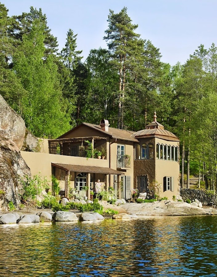 Podría ser, verdad?? Vemos esa cocina preciosa, con encanto rústico y encimera de obra, azulejo y reja de gallinero en las puertas. Casi falta la abuelita horneando pasteles... Esta casa preciosa, que se encuentra a orillas de un lago, está a poca distancia de la capital Sueca. Impactante! El diseño y la decoración responde al gusto del propietario por la DECO rústica y el aire de casa de campo de las villas francesas.