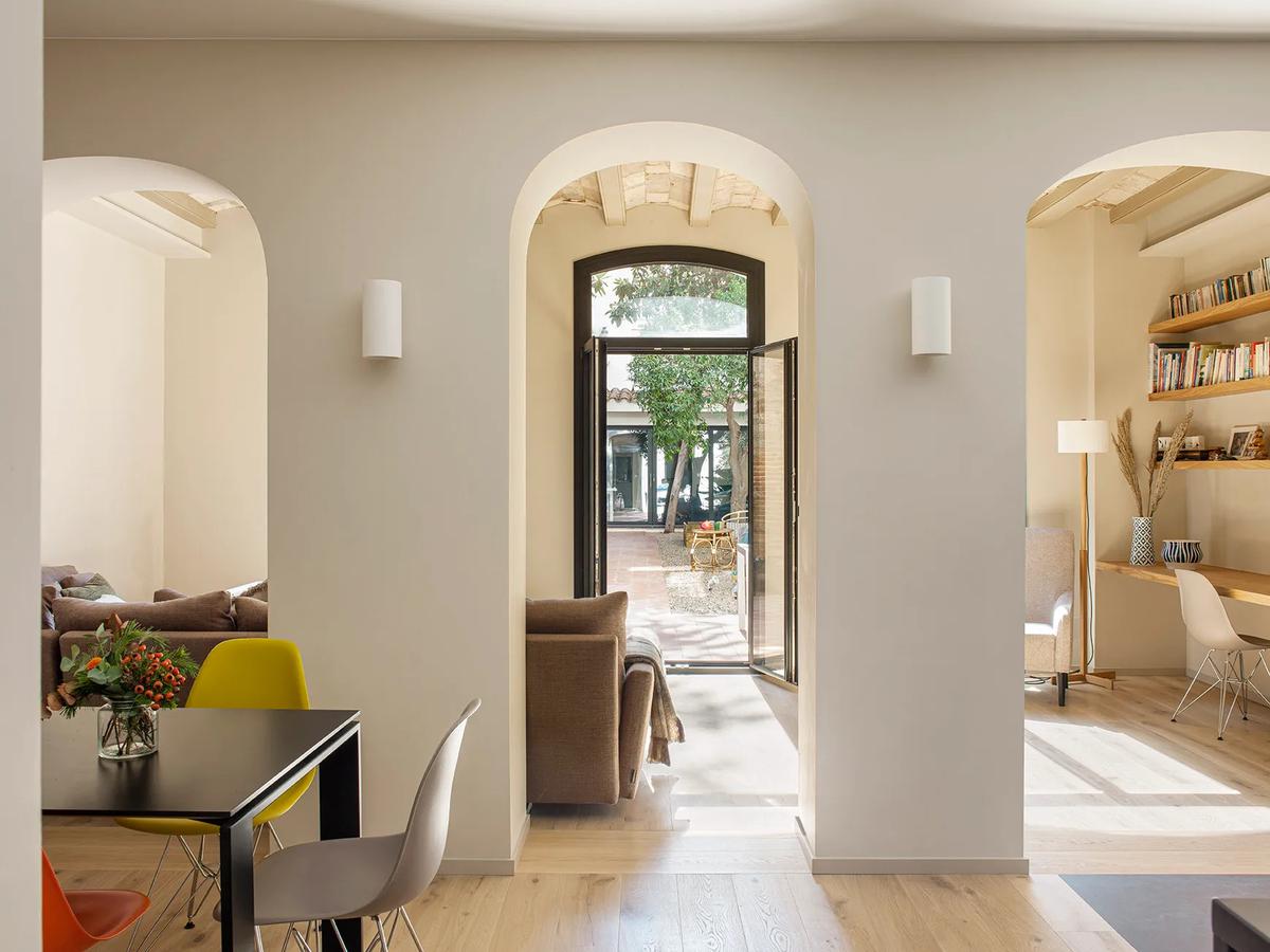 En todo momento se quiso conservar la esencia de la vivienda, con sus elementos originales, incluso se encontraron nuevas zonas durante la demolición, como un sótano que podría remontarse a la época de la Guerra Civil. Para empezar, se demolió completamente el interior y se crearon espacios más funcionales, pero para no perder su esencia ni la sensación de calma, se rediseñaron los arcos del salón, se eligieron cálidos tonos tierra en las paredes, se ampliaron las ventanas a su estado original, así como se hizo un nuevo diseño para el bonito jardín.