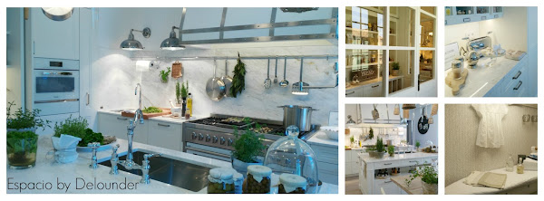 Siguiente parada: otra cocina. En esta ocasión la "Cocina by Llüisa Deulonder y Chone de la Sotilla" y, además, mi favorita de las que vi en este #CasaDecorMadrid2016. Planteada por sus creadoras como una "family room" en la que "se cuece" la vida familiar, el espacio se divide en cuatro: la cocina en sí, una gran zona de comedor, una despensa y un cuarto de planchado en el que, además, habían utilizado un papel pintado que acabamos de recibir en la tienda, un diseño de la colección Riviêra Maison que imita el trezado del mimbre que me tiene enamoradita. Blanca, espaciosa y abierta, con ese aire inconfundible de las cocinas americanas, su estilo acogedor y sus muchos detalles me cautivaron.