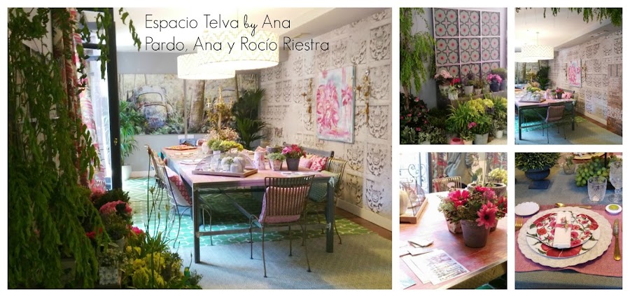Y de una cocina, nos vamos a un comedor. Llegar al espacio "Telva Comedor by Ana Pardo de Santayana, Ana Riestra y Rocío Riestra" fue, literalmente, como salir a un jardín. con el sol entrando a raudales por las puertas, la preciosa fuente rodeada de plantas, el mural del fondo y la gran mesa lista para disfrutar. Creo que en este espacio todos los que visitábamos juntos la exposición estuvimos de acuerdo: transmitía frescura y mucha inspiración. A mí me encantó e, inmediatamente, me imaginé allí de merienda con amigas ;)