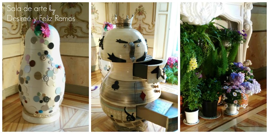Y del salón, a la "Sala de Arte by Desireé Ramos y Félix Ramos" en la que sus creadores, aprovechando las características arquitectónicas del espacio - con grandes techos y paredes ornamentadas -, han creado un espacio que es puro teatro. Inspirándose en los gitanos de la corte de Felipe II, sus protagonistas son cuatro grandes figuras exentas - un rey, una reina, un gitano y una gitana - con forma de matrioskas rusas que, tras esa impresionante fachada esconden unos sinfonieres únicos, firmados por Lola Glamour. Convencidos de que la creatividad debe estar al servicio de cualquier proyecto decorativo, el conjunto se remata con una chimenea de mármol tan teatral como el resto del espacio de la que, en lugar de llamas, salen flores y plantas.
