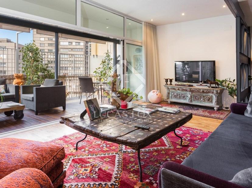 En el Ensanche, encontramos este estupendo ático de 150 m2 en Barcelona, ubicado en una finca que data de los años 20 del pasado siglo. Lo primero que llama la atención es la distribución de la casa. Se trata de un ático diáfano donde los espacios parecen fundirse unos con otros, ofreciendo así una sensación de amplitud muy agradable.