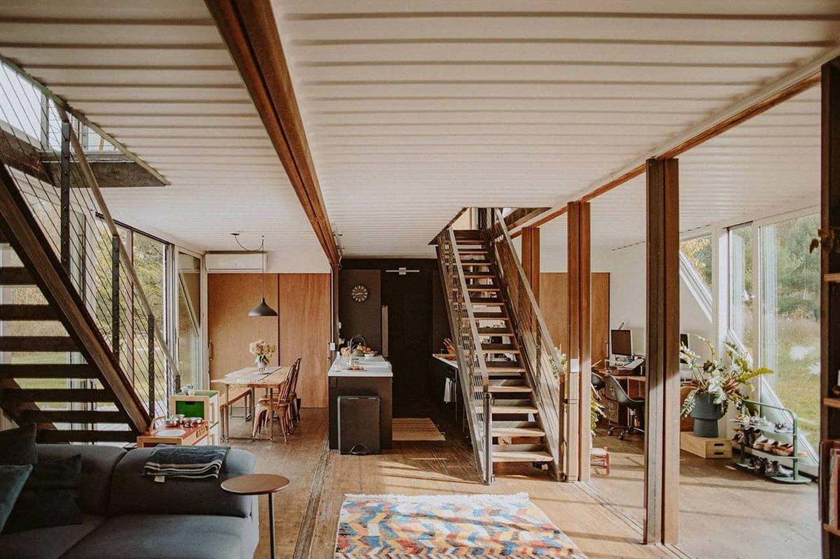 Fuente: pinterest Están completamente equipadas desde el mobiliario, cocina, baño y electrodomésticos. Conservan el suelo original de los contenedores realizado con tablero de madera Apitong atornillados a la estructura metálica. Los techos son también los originales de los contenedores, aislados por fuera y pintados y expuestos en el interior.