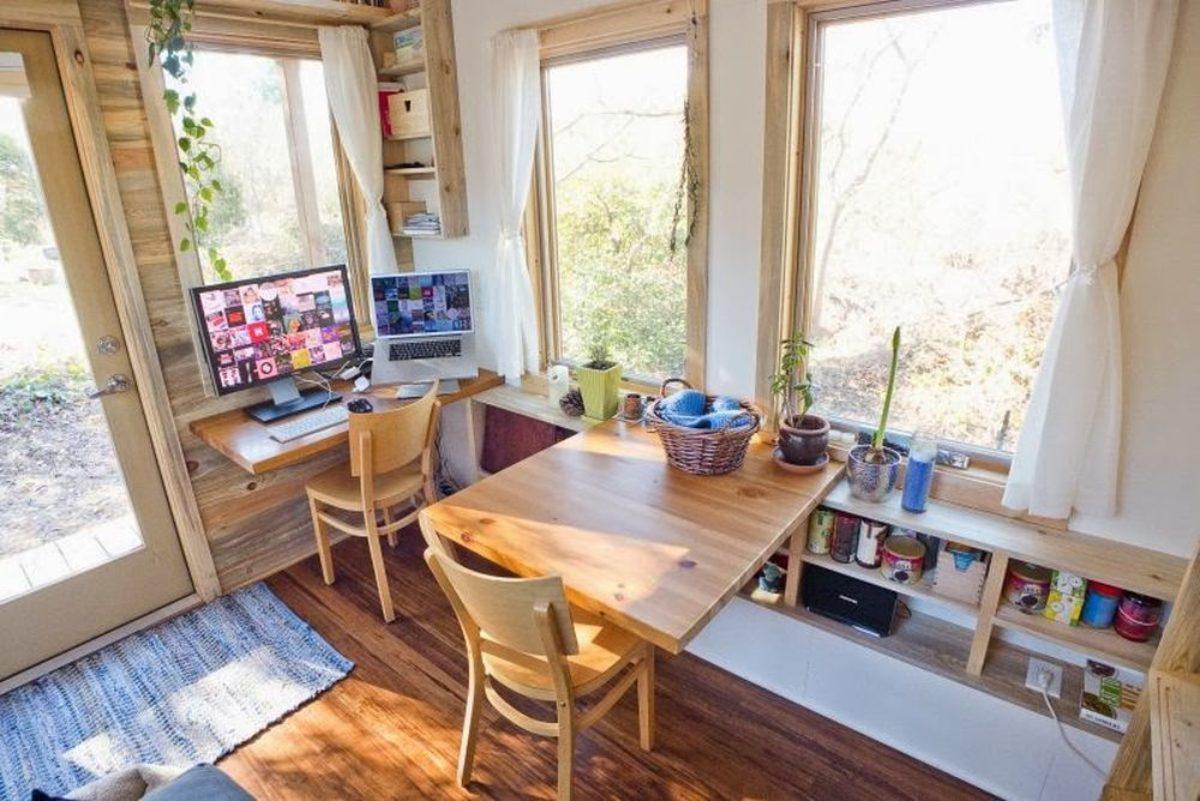 Fuente: pinterest La casa de casi 50 metros cuadrado cuenta con 10 ventanas para dotar al interior de gran luminosidad y mayor amplitud visual. Revestida de madera natural consigue un ambiente cálido y confortable. El espacio está aprovechado al máximo y los muebles son multifuncionales y versátiles. Es una de las casas remolque más sorpréndete, hermosa y eficiente.