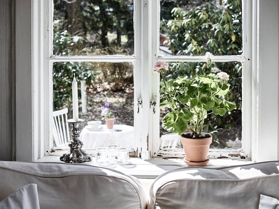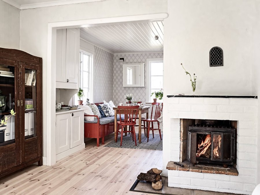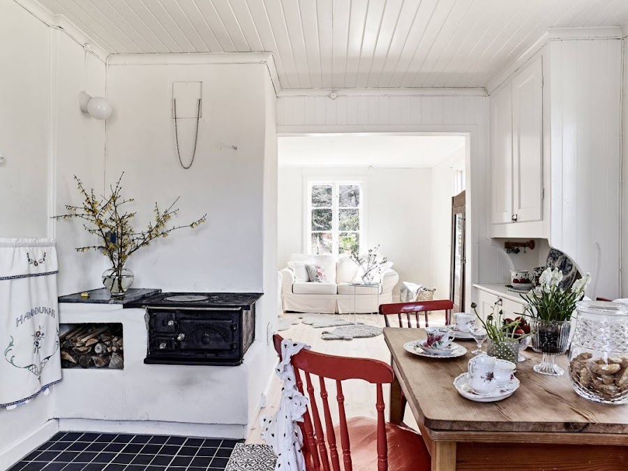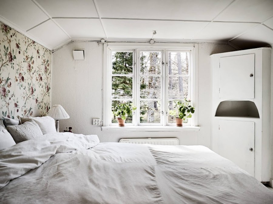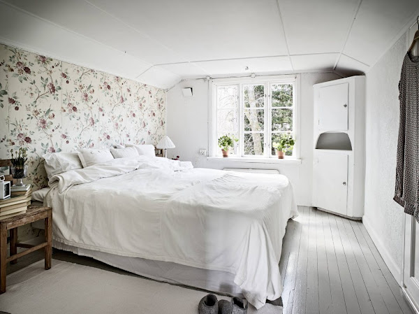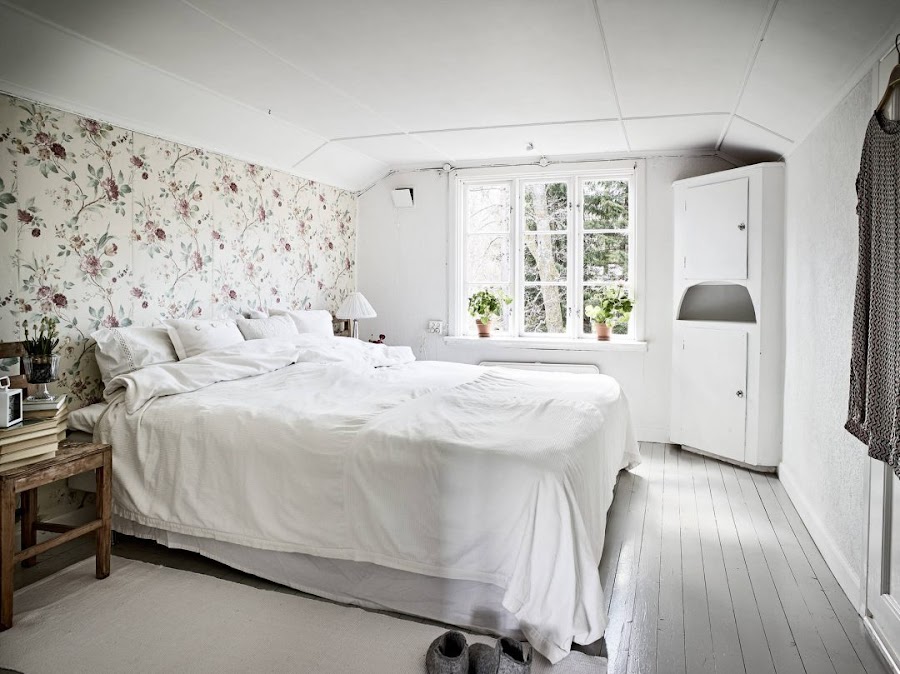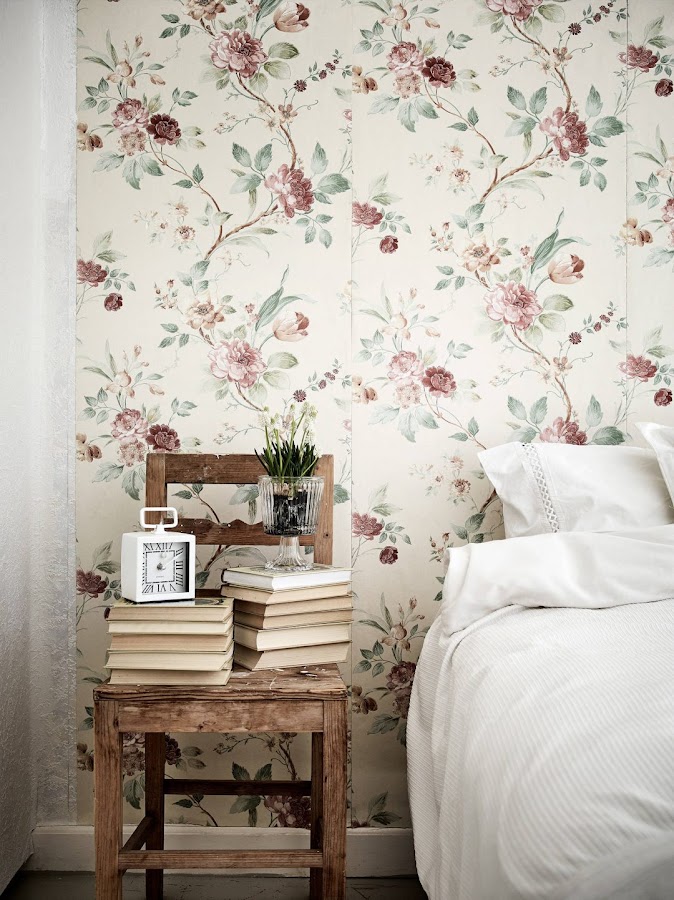 Su encanto está en los motivos florales en textiles, papel pintado y accesorios, que combinados con paredes blancas, hacen que la casa mantenga ese aire campestre de antaño.