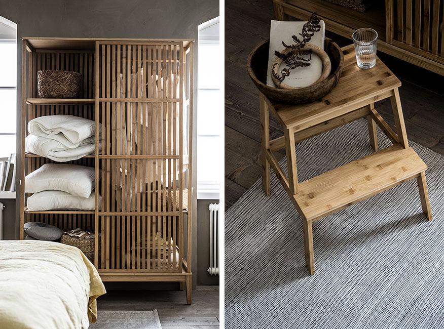 Y de la elegancia del terciopelo pasamos al toque cálido y natural del bambú. Este material se ha convertido, junto al ratán, en un indispensable en nuestro hogar. ¿Quién no tiene hoy en día un mueble, alfombra, lámpara o accesorio de fibras naturales? Aquí van dos de mis favoritos para esta temporada.La nueva puerta IVAR, que va a cambiar por completo el aspecto de esta serie perfecta para el almacenaje.