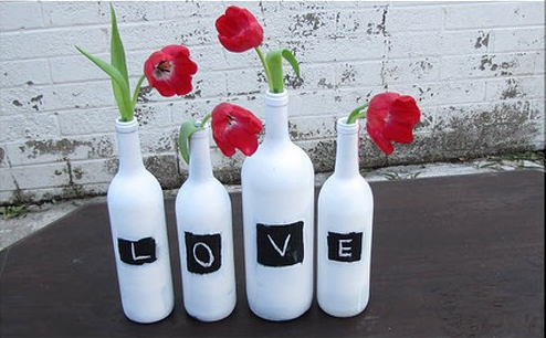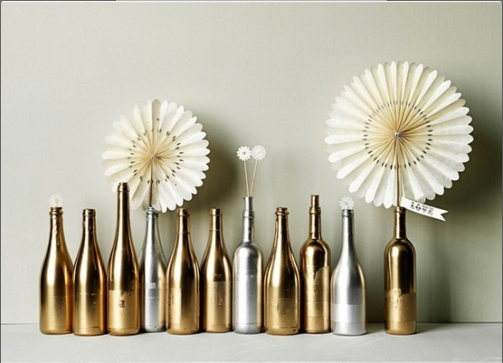 Ya vimos aquí los centros de mesa que podíamos hacer con botellas de vino u otros licores, tras lavarlas y quitarles la etiqueta. Ahora bien, si las transformamos con un poco de imaginación, tendremos una decoración de mesa espectacular como la de la foto superior.