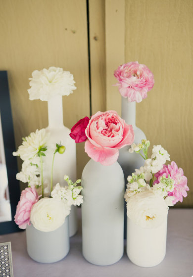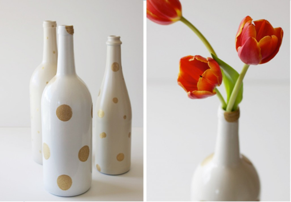 Pintar las botellas con spray no tiene ninguna dificultad y podrás elegir el color que más te convenga según la vajilla o el mantel que vayas a poner.