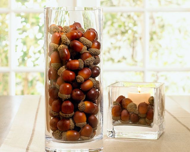 Lo bueno que tienen estos centros de mesa es que los podrás realizar tu misma, con un jarrón, tarro o vasija adecuada, unos frutos, flores u hojas secas, velas......aquí tienes unos ejemplos para orientarte.