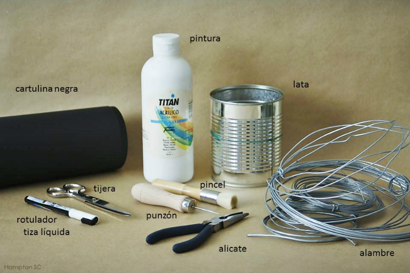 Después haremos dos agujeros equidistantes en la lata con un punzón e
