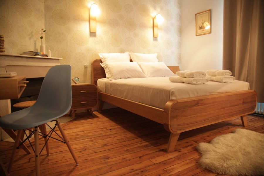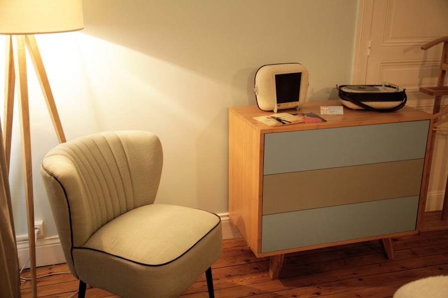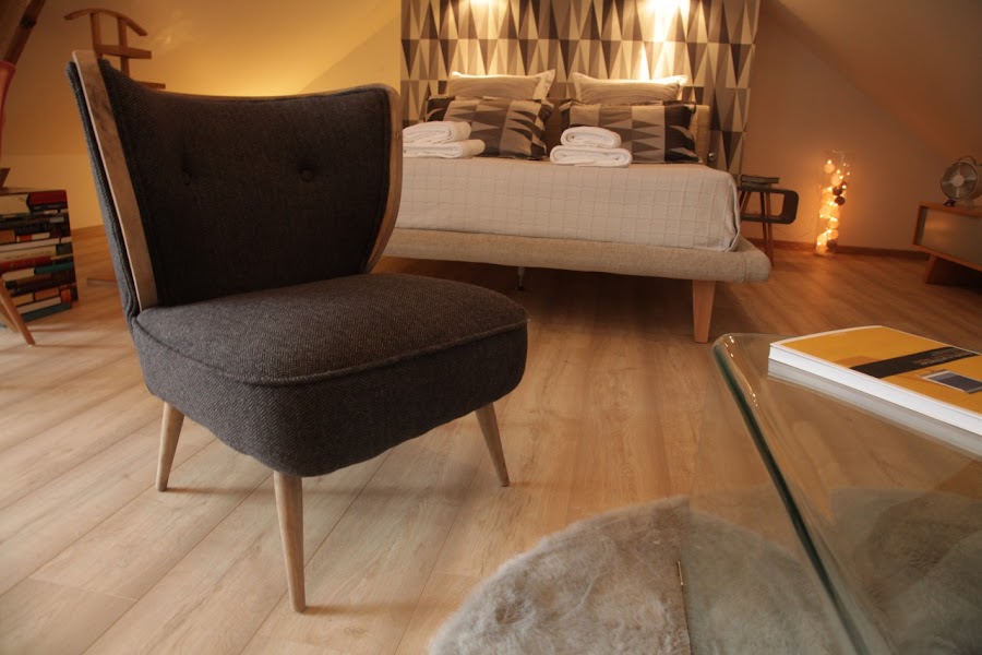 El Chez Ric&Fer se encuentra situado en el pueblo medieval de Coucy Le Chatêau, al norte de Francia. Me ha sorprendido su cuidado diseño interior, en el que el estilo escandinavo de los años 70 es el auténtico protagonista. Muebles de madera se alternan con elementos de color y piezas de diseño, como las sillas de los Eames y encajan a la perfección con los preciosos suelos antiguos hidráulicos y de madera.