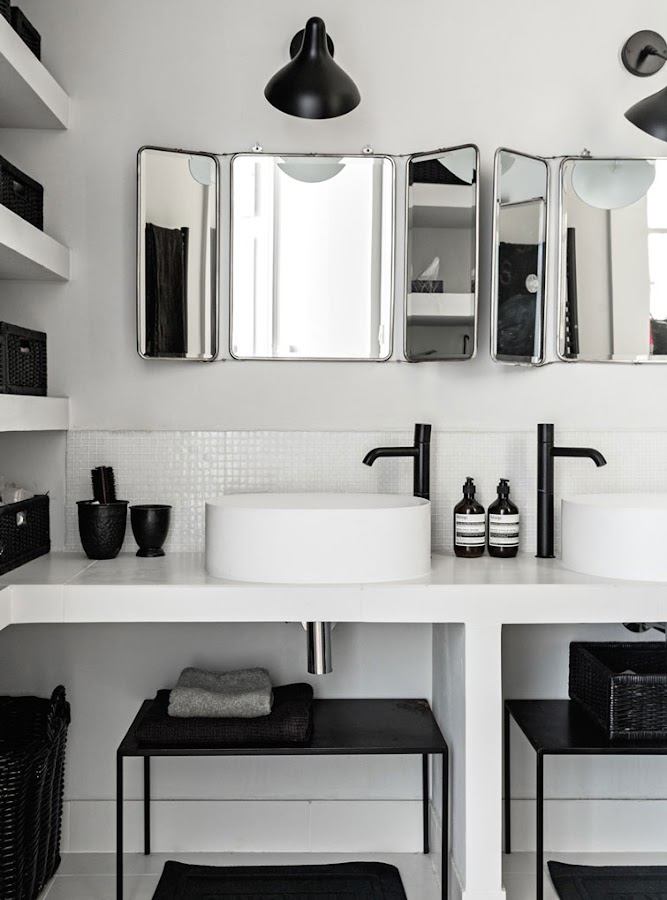 Techos altísimos, molduras, espacios con muchos metros (o eso nos parece, que es lo que cuenta) y una vivienda llena de recursos decorativos para hacer más "importante" la nuestra propia. Me gusta especialmente el uso de espejo para decorar las paredes en casi todas las estancias. Todos con diferentes estilos, tamaños, pero bien incorporados al diseño general de la casa gracias a la gama bicolor...