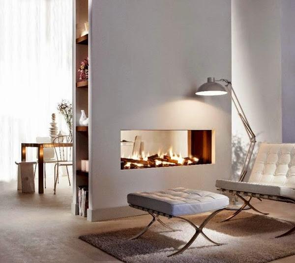 Aunque tengo que confesar que esta chimenea colocada en la pared que comunica el dormitorio y el baño me parece lo más...super romántica ¡jajajaja!. Hoy en día existen gran cantidad de modelos que se integran completamente con el diseño y la decoración de cada uno de estos espacios. Normalmente este tipo de chimeneas suelen quedar muy bien en entornos de decoración modernos y de aires minimalistas, otra de las ventajas, es que se pueden adaptar para que funcionen con gas y con bioetanol...bueno vamos a ver a continuación algunos de los modelos que más me han gustado.