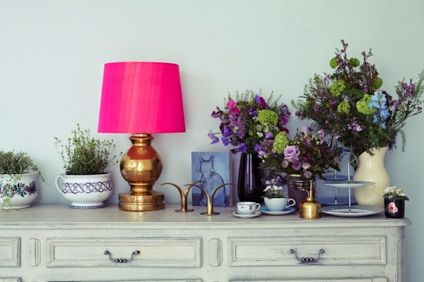 Michelle, su propietaria es diseñadora floral y una gran amante de la botánica, por lo que en ninguno de los espacios faltan las flores. Nos las encontramos naturales, utilizando jarras, cuencos y macetas como floreros y también adornando las paredes de los distintos espacios, en marcos o en un delicado papel pintado.