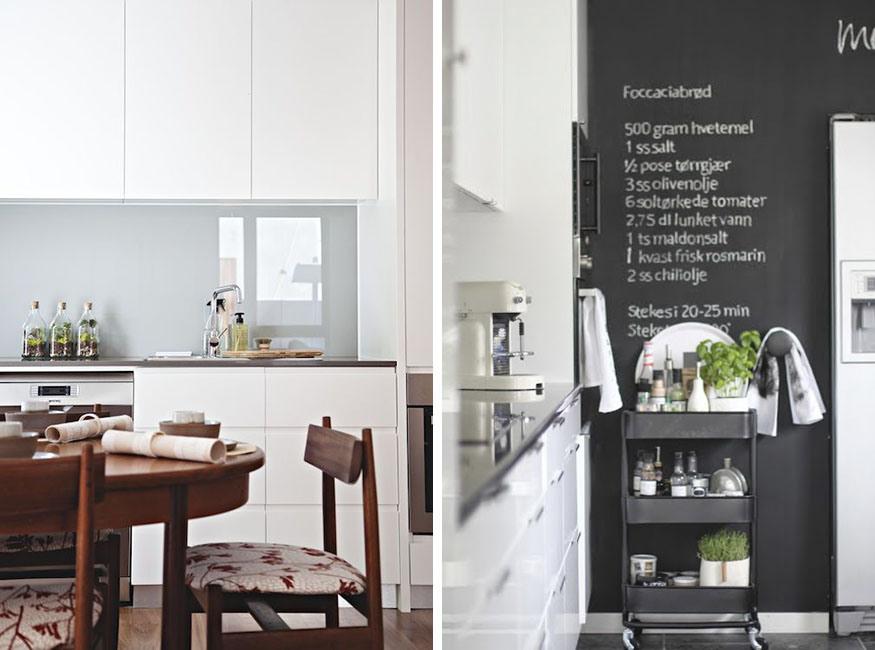 Para el resto de la cocina podéis utilizar cualquiera de estos materiales anteriores, incluyendo la pizarra o el papel pintado vinílico, que es duradero y de fácil mantenimiento y queda muy bonito por ejemplo en una zona de comedor.