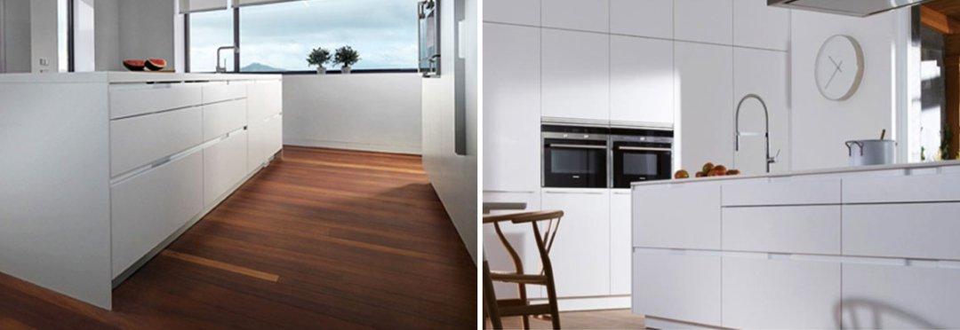 Al igual que los tiradores, podemos optar por muebles de cocina con tiradores a la vista o con el llamado sistema “gola”, un sistema de perfiles interiores que permite que la apertura de cajones y puertas de cocina quede oculta.