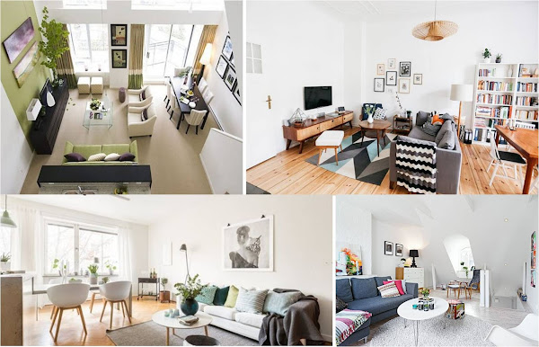 Grandes o pequeños, lo primero a tener en cuenta es la localización de puertas, ventanas, tomas de tv. radiadores y otros elementos arquitectónicos presentes en la estancia. Hecho esto ya puedes situar tus muebles básicos: sofá, mesa de centro y mueble de tv -prescindible en salones pequeños-. Cuando tengas definido cada mueble completa con piezas auxiliares: librerías, apoyos o asientos extras -mesitas, butacas, sillones o pufs-. Prioriza qué actividades realizarás en el salón: ver tv., comer, tocar instrumentos, leer o escribir, crear una zona de despacho o estudio, de relax, de juego para los peques, para practicar yoga o como mini-gimnasio, etc.Otro punto que solemos obviar es el de las medidas. Cuida las zonas de paso (en torno a 60cms.), y también las aperturas de muebles con puertas abatibles o cajones. Es habitual el error de situar un mueble y que al abrir puertas o cajones choquen con la mesa de centro, o el término de la chaise longue. Con pocos metros elige módulos y vitrinas con puertas correderas.