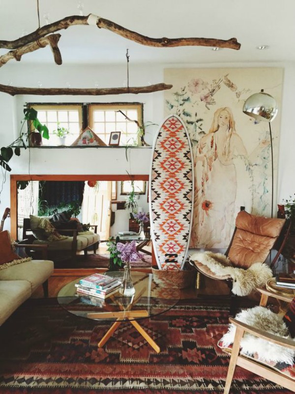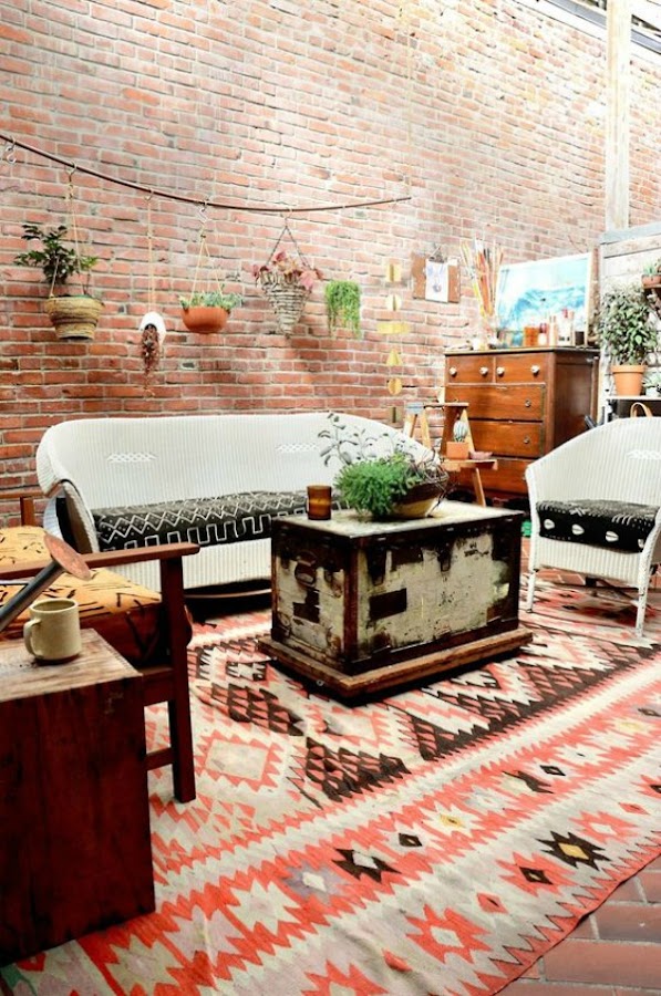 Dar lugar a ambientes cómodos, confortables y creativos ha de ser un factor a tener en cuenta. Y para ello resulta sumamente frecuente encontrarnos ante la presencia de pouffs, amplios almohadones, multitud de cojines... y siempre a fin de potenciar el aire bohemio, un tanto hippie y también étnico donde los entornos de reunión y creación se desarrollaban más bien cerca del suelo.