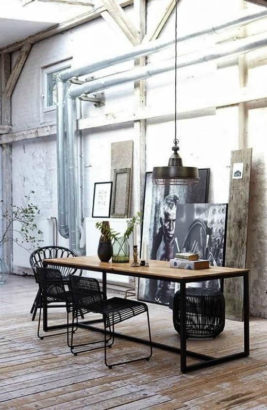 Ya sabes, las naves industriales gozan de altos techos propios de las labores que se realizaban y realizan dentro. De ahí esta característica. Lo que está claro es que hoy por hoy es más habitual encontrar un techo alto en una vivienda antigua que en una nueva. Lo mismo ocurre en el caso de los amplios ventanales. Ten en cuenta que estas características era propia y fijas de la corriente en la época. Que prescindir de ellas no te lleve a abandonar tus pretensiones si es que te gusta el estilo industrial y te apetece implantarlo en casa. Adapta tu espacio a las directrices del estilo y obtendrás igualmente un estupendo resultado ;)
