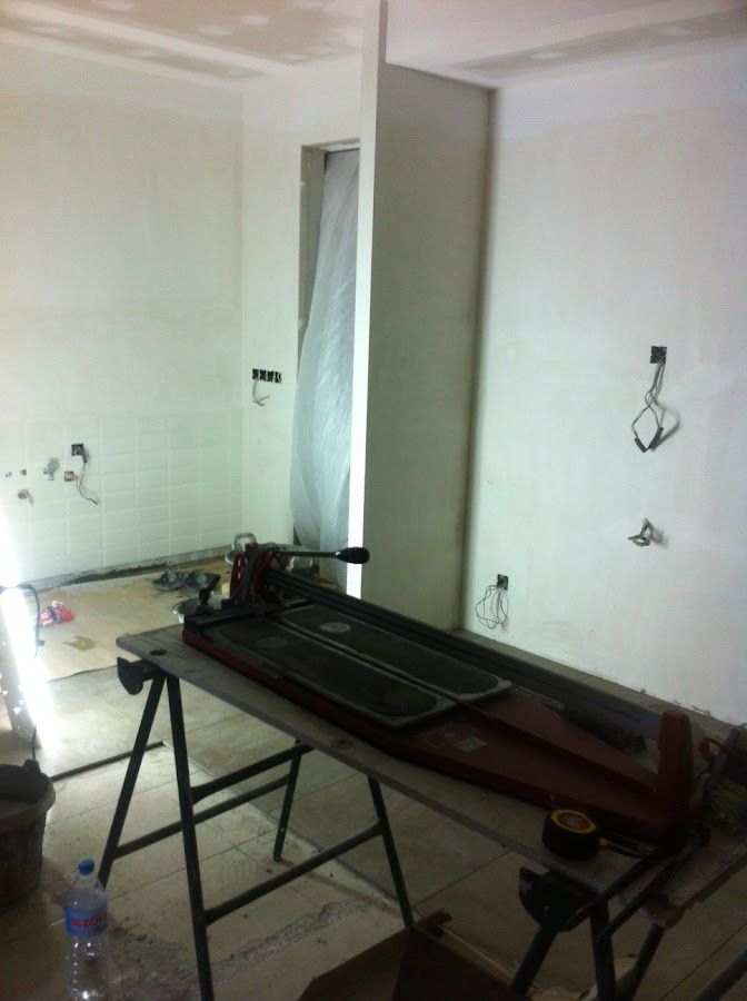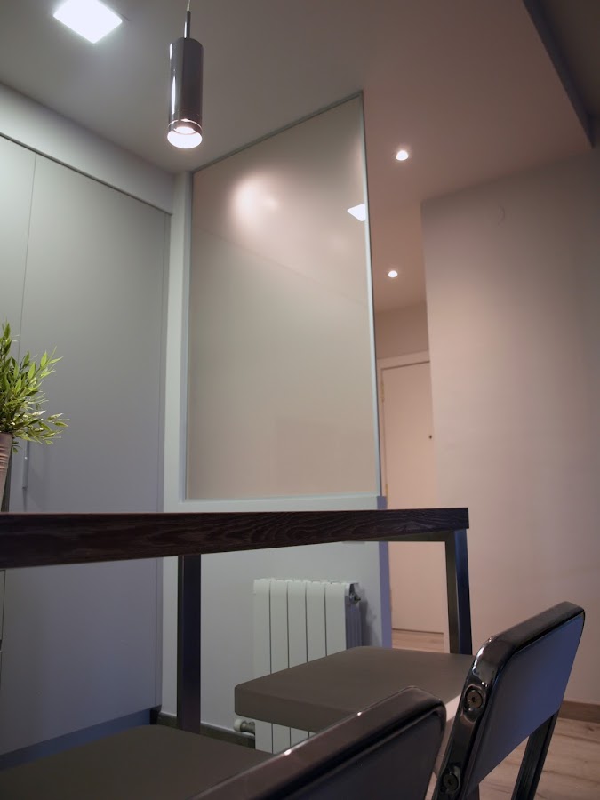 La reducción del tabique que teníamos al entrar desde el recibidor, se cubrió con un vidrio mate