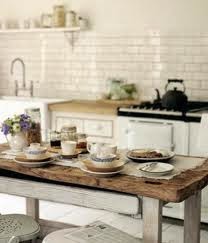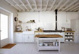 Techos altos con vigas, azulejos "metro", instalación eléctrica vista, cocina de carbón, y sobre todo blanco, en muebles "viejos" recuperados, mezclados con madera natural.