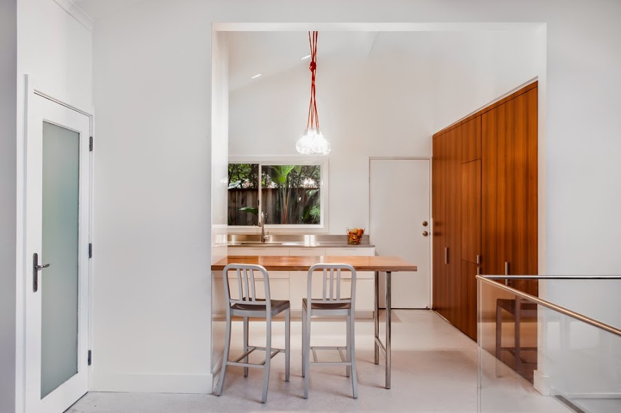 Cuando no se tiene mucho tiempo ni sitio para realizar las tareas domésticas, un área conjunta y funcional de cocina, lavadero y oficina es una estupenda opción. Este diseño de Darren Genner de Minosa Design, incluye además, una mesa para comer diario con lo que se completa una estancia donde se aprovecha al máximo el espacio.