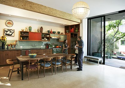 Lámpara de corcho de gran formato , que imprime mucha personalidad a la estancia , junto con las sillas butterfly y esa mesa de centro tan "diferente"....... hacen de esta casa en Californi ...