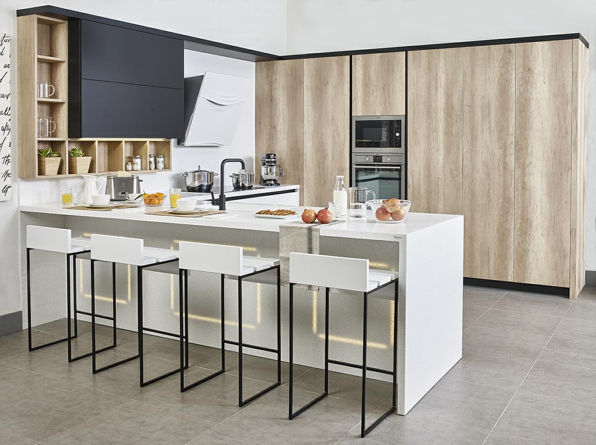 Un espacio multifuncional como este tipo necesita una iluminación adecuada para cada una de las distintas tareas que vamos a realizar en él: cocina, estudiar, trabajar, Disponer de luz de calidad en la cocina está siendo esencial durante la cuarentena. Actualmente, hay una gran variedad de muebles que disponen de iluminación incluida que nos pueden proporcionar un ambiente más íntimo cuando nos apetezca. Desde la luz directa para islas o barras en la parte superior, como luz de encuadre para nuestra zona de trabajo mientras cocinamos.