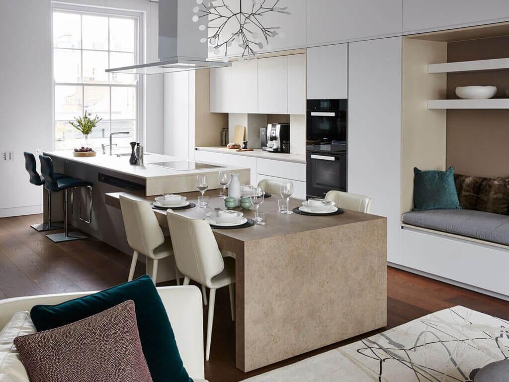 Al unir estancias, ampliamos visualmente el espacio, ganamos amplitud al eliminar paredes y puertas y añadimos luz natural. Teniendo en cuenta la conciliación en estos días de confinamiento, las cocinas abiertas permiten controlar todo lo que ocurre alrededor, por lo que facilitan la vigilancia de los más pequeños mientras tú cocinas o trabajas. También hay que tener en cuenta que disponer de electrodomésticos de última generación y máxima eficiencia energética reducirán el consumo, aumentarán la sensación de bienestar en este espacio compartido, ya que son mucho más silenciosos, y las gavetas y contenedores para reciclaje permitirán un mayor orden y limpieza. Todo esto sólo será posible si planificamos con antelación la remodelación, ya que las tomas de agua, luz y extracción que necesita una cocina difieren mucho de las que necesita un salón, que es mucho más adaptable.