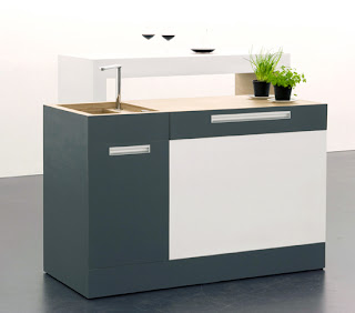Otro ejemplo, es la Cocina " 1m2 ", una buena solución de ahorro de espacio. Su objetivo es combinar todos los elementos esenciales de la Cocina, placa, horno, figorífico y fregadero en una estructura de 1m2.