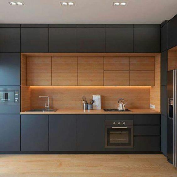 El color negro es tendencia en el diseño de la cocina y lo podemos ver en cocinas negras integrales como único protagonista, pero también lo veremos junto a otros materiales y colores, considerando que las cocinas negras y sus combinaciones también se pueden catalogar como cocinas de tendencia según el color y material aplicado junto a el, como son las cocinas negras con madera, aportando esta, calidez, luminosidad, un extra de diseño…según el tono de la madera.