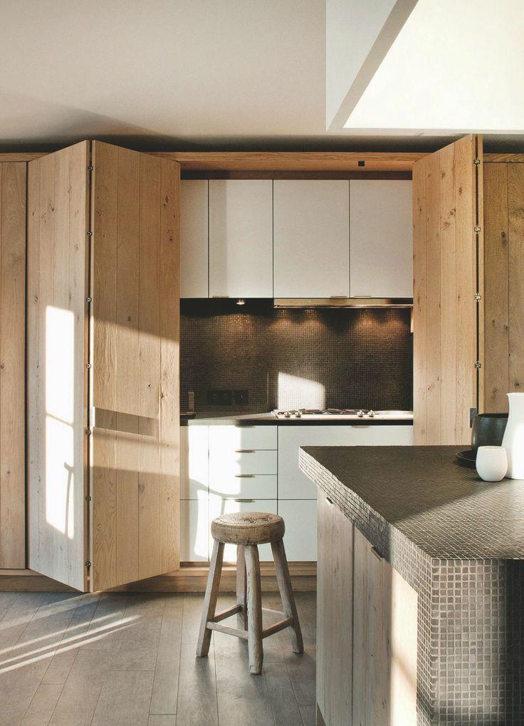 Otra variante de puerta son las abatibles de forma verticalmente haciendo que la puerta quede recogida en lo alto de los módulos. De esta forma la parte central de la pared se abre y deja al descubierto todas las áreas de la cocina. Esta apertura la podemos aprovechar en el caso de que no tengamos mucho espacio para la cocina, aportándonos un diseño diferente y muy moderno.Nos vemos en el próximo DecoPost con mas diseño y cositas bonitas.