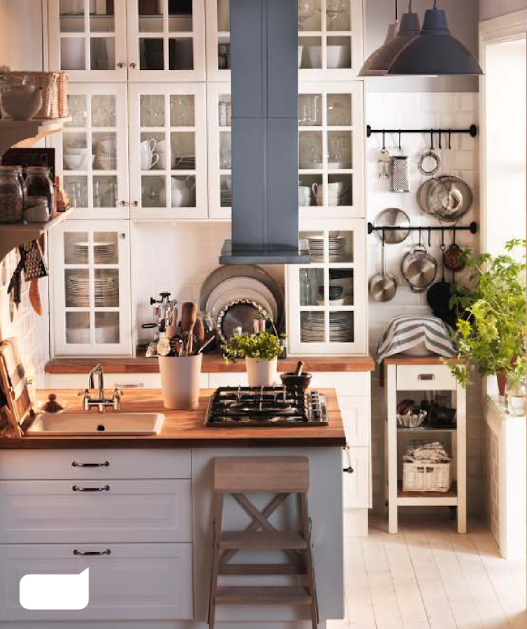 Pensamos que para incluir una isla o península en nuestra cocina necesitamos que esta sea de grandes dimensiones, pero no es así, con un buen diseño podemos incluir una isla incluso en una cocina de 9 m². Lo importante es diseñar la cocina con funcionalidad y sentido común. La isla es un lugar ideal para ubicar la zona de cocción o lavado y también para aprovechar y colocar detrás de ella una pequeña zona de desayuno o cena informal, con taburetes altos.