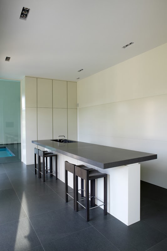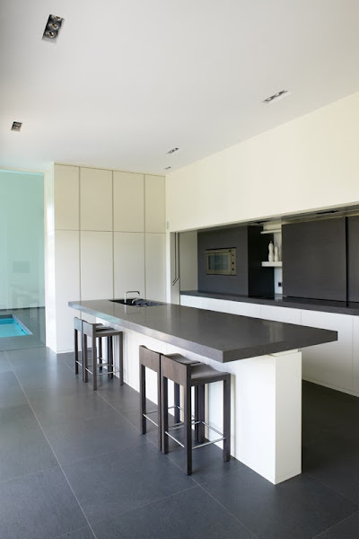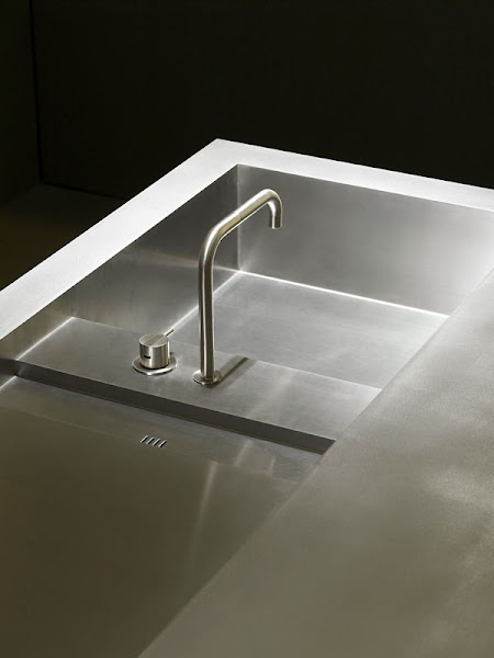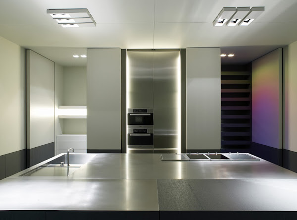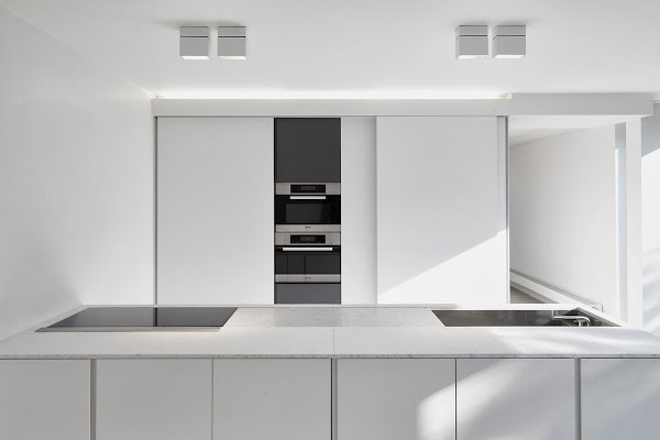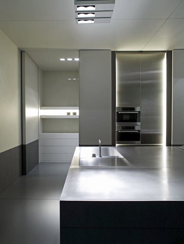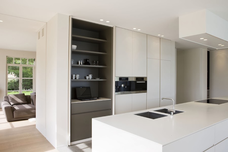 Aunque no es un concepto nuevo, los diseñadores y fabricantes de la firma belga Minus, han sabido desarrollar estupendamente unos diseños simples de líneas puras que reducen la cocina a una mínima expresión estética. Se trata básicamente de una gran isla de trabajo rodeada de muebles en columna, a manera de paredes, que debemos abrir para poder usar, por ejemplo, el horno, el frigorífico o simplemente para sacar los platos de la próxima cena. Buscan una gran simplicidad de líneas, para que la cocina pase casi inadvertida, pero con todas las comodidades para hacer de la preparación de una sencilla comida, un momento especial. Son diseños muy apropiados para espacios abiertos y para personas que prefieran una cocina que no se note desde el salón y que se integre perfectamente al resto del ambiente. Los materiales usados para la fabricación de estos modelos son de gran calidad como madera maciza y chapa, laca, materiales plásticos, acero inoxidable, cuarzo, entre otros, además de los herrajes más novedosos del mercado. Minimalismo en su máxima expresión.