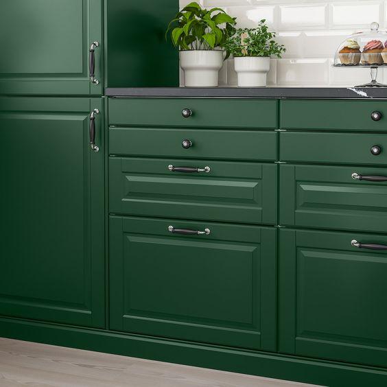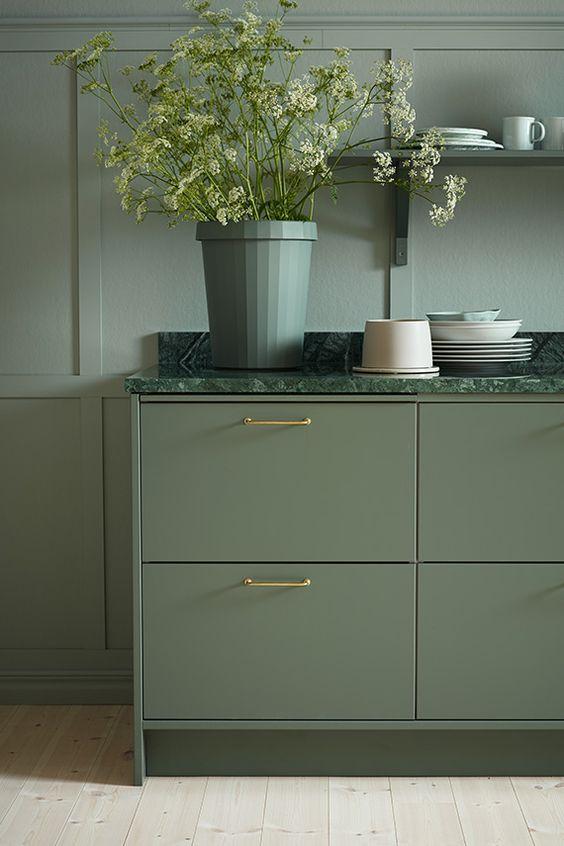 Cuando se habla de cocinas verdes, nos solemos referir al color de los muebles. Pero no se puede generalizar, ya que existen una amplia gamas de verdes y cada uno de ellos aporta al diseño de la cocina unos efectos totalmente diferentes. Porque no es lo mismo un cocina verde salvia, que una verde esmeralda o una cocina verde aguamarina. Dependiendo de la tonalidad del verde será una cocina totalmente distinta.Además, una cocina verde, ya sabemos que me refiero a los muebles, ofrece un mundo de posibilidades, ya que es muy fácil combinar con otros materiales, como la piedra natural, la madera y los metales. Siguiendo las últimas tendencias en la cocina, vemos que las pinceladas en dorado crean cocinas con mucho estilo y con el verde queda genial.