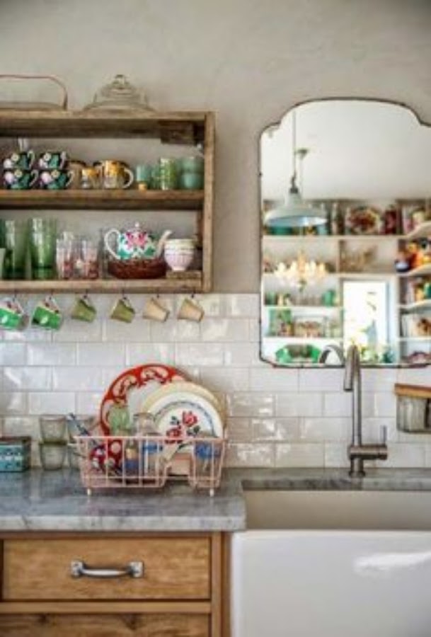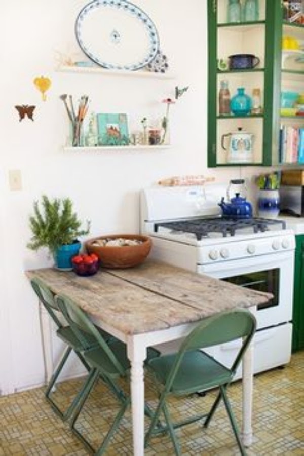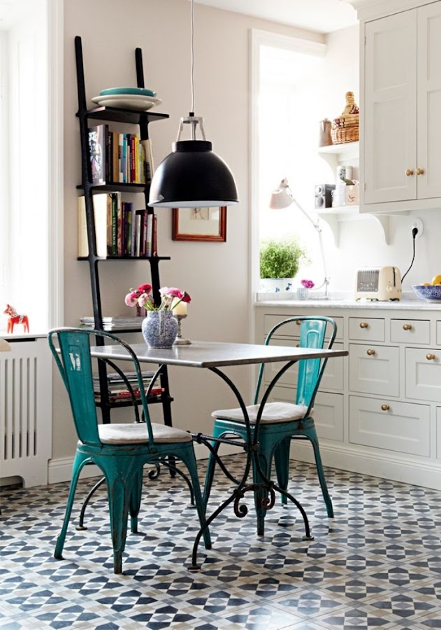 También podemos jugar con el mobiliario auxiliar o los electrodomésticos como el frigorífico SMEG que siempre estará de moda y nos recordará a esas neveras de los 60. Por otro lado podemos decorar con pequeños muebles como las sillas de tipo industrial en acero galvanizado (o en colores si queréis), estantes de pared para poner nuestras tazas y vajilla antigua o superficies en madera desgastada.Y luego de la forma más fácil y sencilla podemos decorar con accesorios que tengamos dentro de este estilo. Para conseguir el estilo vintage nos irán bien utilizar viejas cajas de latón, botellas de cristal antiguas, o tarros y jarras metálicas en tonos pastel... las opciones pueden ser tantas como os gusten.