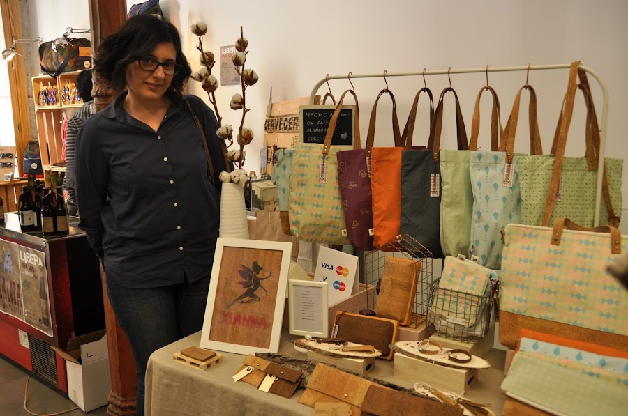 Un proyecto muy interesante es el de Xianna, donde podemos encontrar diferentes artículos hechos con corcho. Uno de sus bolsos se vino conmigo.
