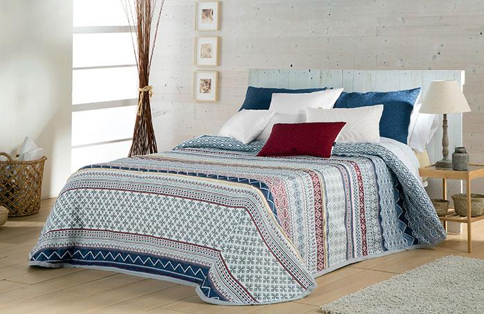 Combinando el efecto decorativo del poliéster, que no se arruga, con la suavidad y el frescor del algodón, Cañete propone varios modelos de colchas de verano con detalles de color. Color que en la colcha capa Indalo se muestra en finas líneas horizontales que resaltan sobre un fondo de color neutro; en la colcha capa Madi aparece en un bonito y juvenil diseño geométrico y en la colcha Capa Zuma se traduce en una impresionante composición de inspiración étnica.