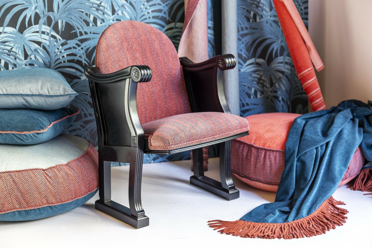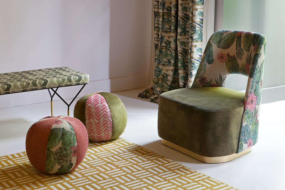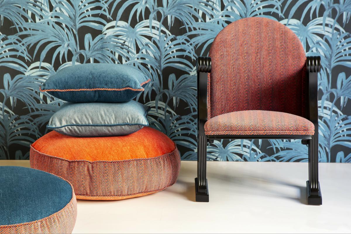 La colección se compone de una amplia variedad de tejidos en cuatro gamas de combinaciones de color: los mostazas y granates, los azules y turquesas, los verdes y beiges, y por último, los marrones y grises. Las calidades son terciopelos, chenillas, tweeds, cheviots, elaborados en fibras como viscosa, lino, algodón, lana o poliéster. Todas ellas están especialmente diseñadas para su uso en tapicería, por lo que son perfectas para realzar un buen mueble, dotándolo de mayor personalidad.