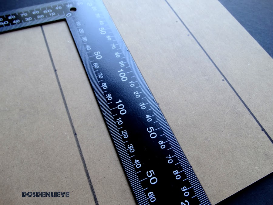 1. Lo primero que hacemos es marcar en nuestro tablero unas líneas paralelas con la regla. ¿Y por qué hacemos esto? Muy sencillo. A partir de nuestro tablero liso queremos simular el efecto de tablas de madera encoladas entre sí, que de un aspecto más rústico a nuestro trabajo.