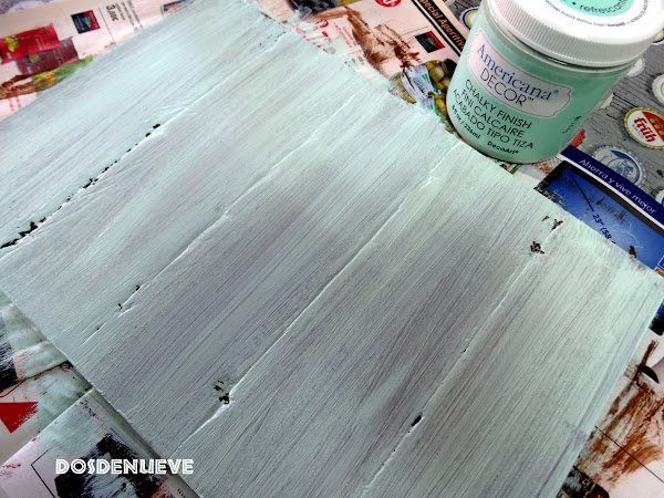 4. Cuando la pintura que hemos puesto de base esté completamente seca aplicaremos sobre ella el segundo color. En este caso hemos elegido un verde mint de pintura a la tiza.