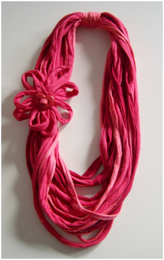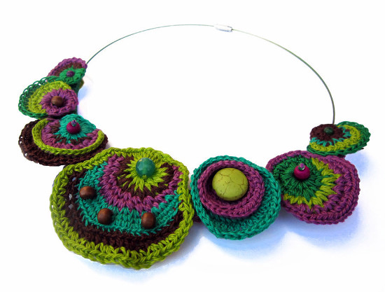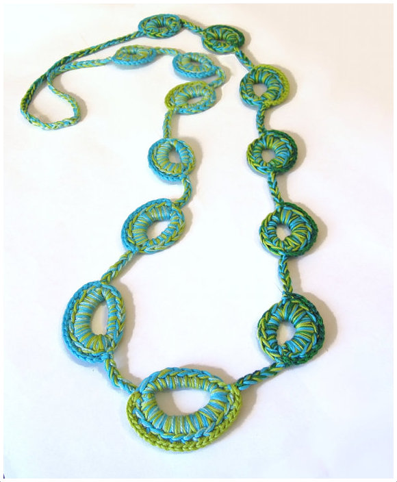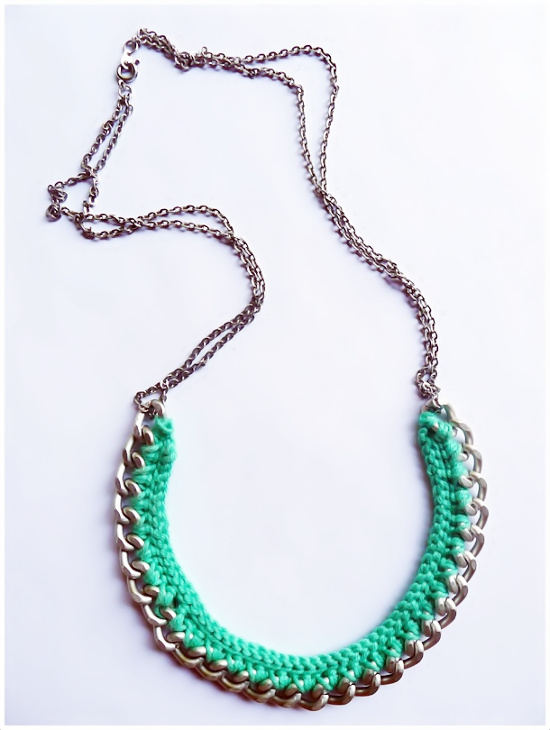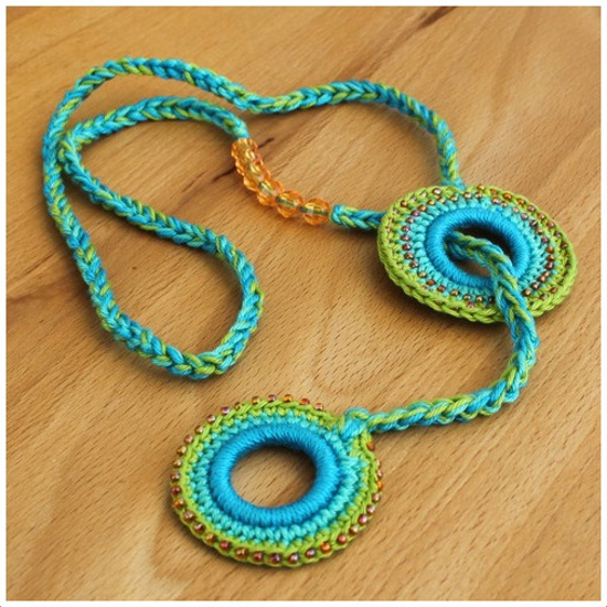 Hoy vamos a darnos un capricho, no todo va a ser decorar la casa, así que para aquellas que les gusta el crochet tanto como a mí, vamos a tejer unos collares o gargantillas con los restos de trapillo, hilo o lana que nos ha sobrado y para realzarlos se les puede añadir cuentas y abalorios reciclados de collares antiguos o comprados en tiendas especializadas.