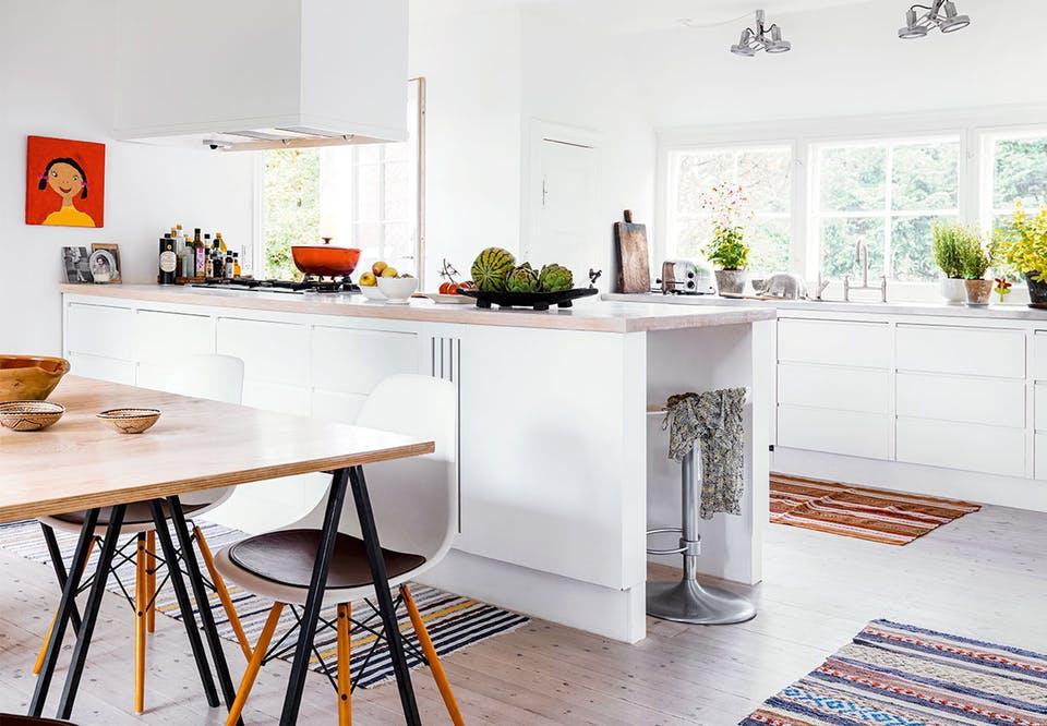 La cocina se nos muestra abierta, brillante y atractiva. Toda la casa ha sido completamente reformada y cuenta con una nueva cocina y dos baños nuevos, y se han derribado algunas paredes para abrir los espacios. Todo ello sin perder la atmósfera original de la casa, dándole de toque y sabor vintage ideal.