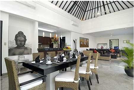 En este hermoso salón se puede observar la combinación de muebles contemporáneos con sillas de ratán.