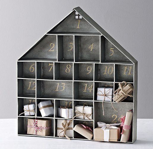La primera idea es la más "currada", consiste en hacer una casita de madera con 24 apartados de diferentes tamaños en los que dejar la "sorpresa" para cada día. Ahora mismo, las estanterías con forma de casa están muy de moda y te resultará fácil encontrarlas, eso si, seguramente con menos apartados de los que necesitas, pero tranqui, siempre puedes tunearla para conseguirlos!!